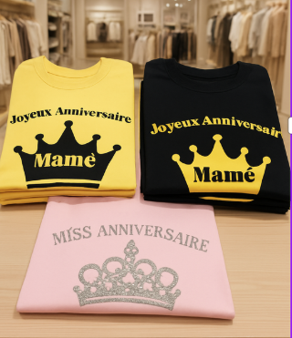 T-shirts, sac, trousses, coussin, sweat plaid,...